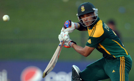 Faf du Plessis cracks a couple of boundaries off Tanvir on either side of the wicket. SA 40-1 in 8 overs.