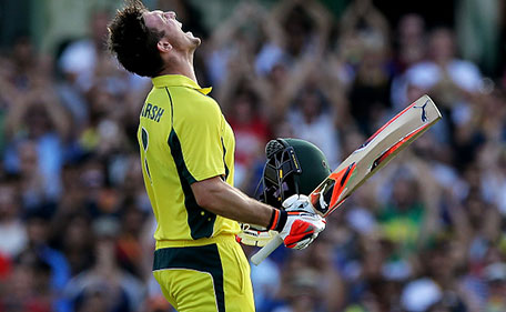 Marsh is nearing a maiden ODI century having clubbed boundaries off Dhawan and Sharma. Aus 313-5, 47 overs.