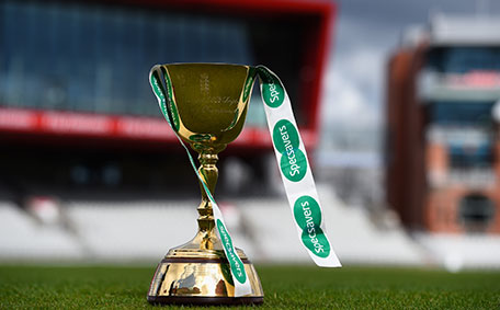 The Specsavers County Championship trophy pictured at the ECB 2016 County Cricket Season Media Launch at Old Trafford on March 30, 2016 in Manchester, England. (Getty Images)