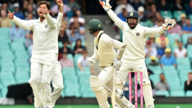 That brought Nathan Lyon to the crease but he was gone after five balls, out lbw without scoring to a full toss from Kuldeep Yadav.