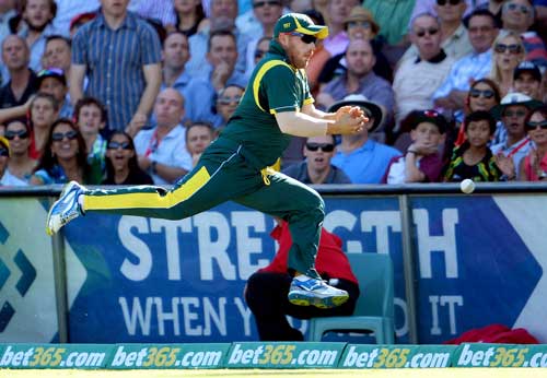 Openers Shane Watson (18) and Aaron Finch (25) are at the crease.