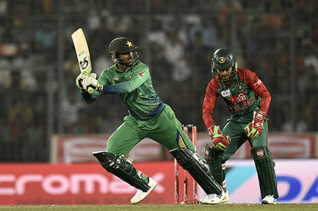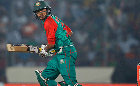 Afridi strays on the leg side and Sarkar punishes him by sweeping to the fence as Bangladesh are on course to book a berth in the finals. Ban 73-2, 11 overs.