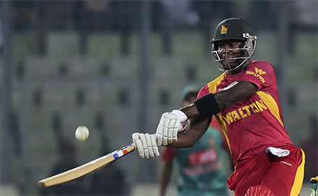 Zimbabwe cricketer Luke Jongwe plays a shot during the second T20 cricket match between Bangladesh and Zimbabwe at the Sher-e Bangla National Stadium in Dhaka on November 15, 2015. (AFP)
