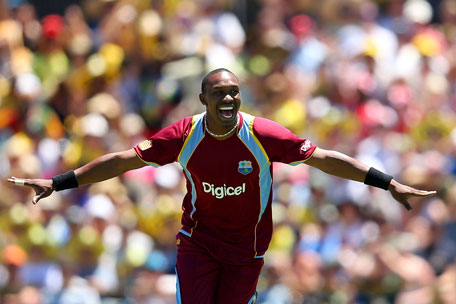 Dwayne Bravo of the West Indies celebrates during game two of the Commonwealth Bank ODI series against Australia at WACA on February 3, 2013 in Perth, Australia. (GETTY)