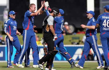 He was ably supported by Chris Woakes and Jade Dernbach, who each took three wickets apiece and maintained a steady stream of dismissals to prevent the New Zealanders building meaningful partnerships.