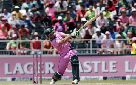Rossouw was dismissed off the third ball of the 39th over. De Villiers promoted himself to number three and struck the ball out of the middle of his bat from the first delivery he faced, which he thrashed for four past bowler Jerome Taylor.