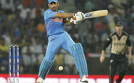India's captain Mahendra Singh Dhoni plays a shot during World Twenty20 cricket tournament New Zealand v India at Nagpur, India, 15/03/2016. (Reuters)
