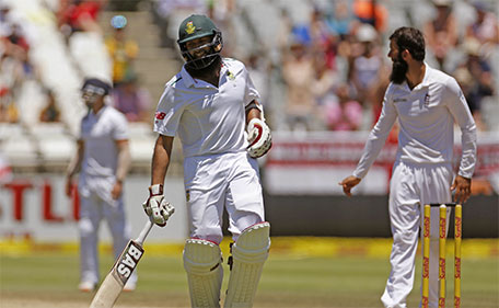 South African Hashim Amla react after making over two hundred runs during their second Test against England in Cape Town, South Africa, Tuesday, Jan. 5, 2016. (AP)