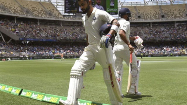 India captain Virat Kohli fell to a controversial catch after becoming the second-fastest batsman to 25 Test centuries on the third day of the second Test against Australia in Perth on Sunday.