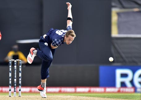 Scotland bowler Josh Davey bowls during the Pool A 2015 Cricket World Cup cricket match between Bangladesh and Scotland at Saxton Park Oval in Nelson on March 5, 2015. AFP
