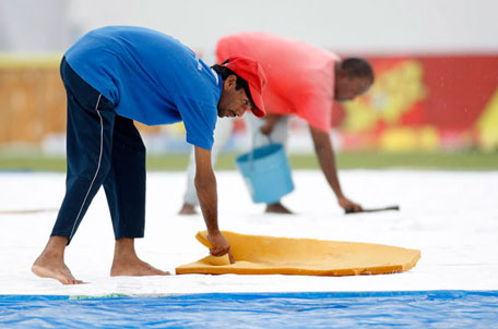 With dark clouds gathering around the stadium, play is likely to called off.