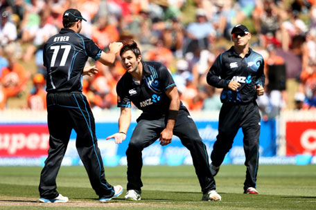 Faced with a target of 279 on a run-laden wicket, New Zealand opened at a rapid rate with Jesse Ryder and Martin Guptill clocking up 54 in seven overs before falling in quick succession.