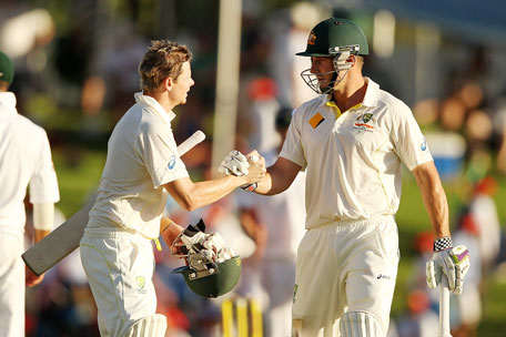 Marsh, who arrived only on Sunday as an emergency replacement for the injured Shane Watson, was on 122 not out from 232 balls, and will resume at SuperSport Park on Thursday with Steven Smith, unbeaten on 91.