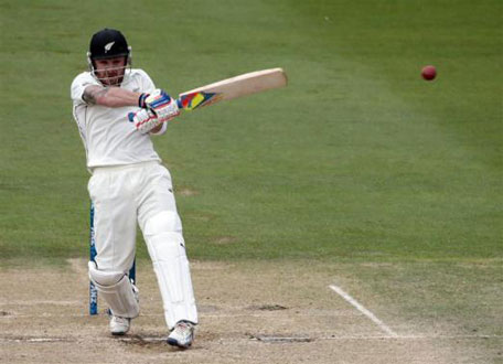 New Zealand's Brendon McCullum plays a shot against India during the second innings of play on day five of the second Test match at the Basin Reserve in Wellington, February 18, 2014. (REUTERS)