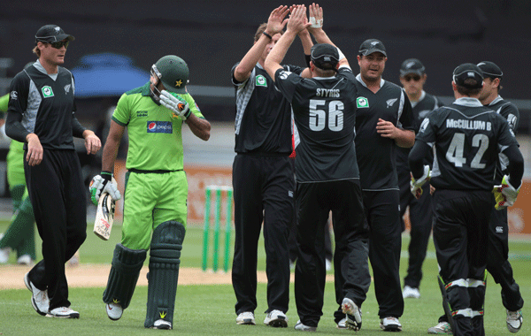 Test captain Misbah-ul-haq was again the mainstay of Pakistan's batting effort with 50, though the rest of the side failed to build any meaningful partnerships, with both Hamish Bennett and Jacob Oram flirting with hat-tricks.