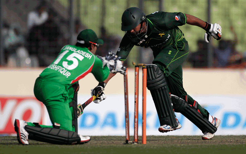 Bowling: Mortaza 10-0-55-1 (w1), Shafiul 8-0-49-0, Shakib 10-0-41-2 (w2), Shahadat 8-0-53-3 (nb1, w1), Razzak 10-0-43-1, Mahmudullah 4-0-19-0 (w1).