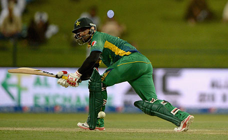 Mohammad Hafeez of Pakistan bats during the 1st One Day International between Pakistan and England at Zayed Cricket Stadium on November 11, 2015 in Abu Dhabi, United Arab Emirates. (Getty Images)