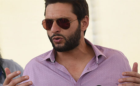 Pakistani cricketer Shahid Afridi speaks to the media in Karachi on October 5, 2015. (AFP)