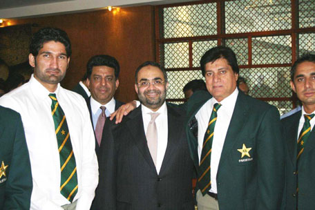 Chief Executive Officer of Clover Creek Hotel Apartments Masood Hashim with some members of the Pakistan team during the ceremony. (SUPPLIED)