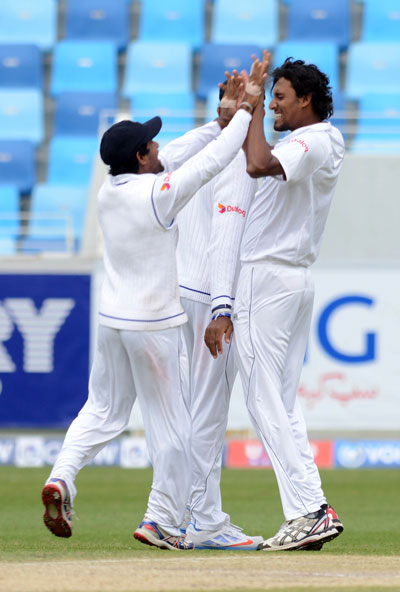 The 26-year-old paceman then induced an edge from Rahat Ali and stumper Prasanna Jayawardene claimed his ninth dismissal of the match, equalling Amal Silva's Sri Lankan record.