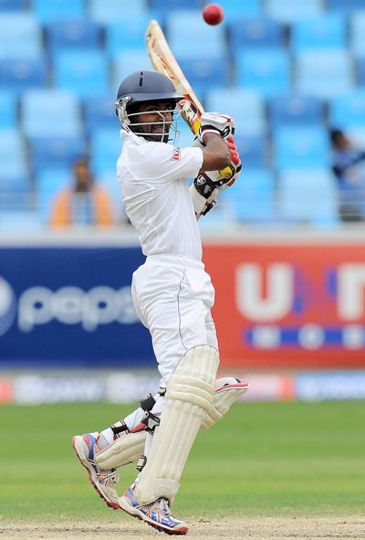 Kaushal steers Ajmal to the third man fence and whips him through the covers as Sri Lanka's target is less than 50. SL 89-0 in 29 overs.