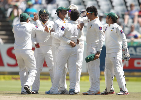 Captain Graeme Smith was Ajmal's first victim, trapped lbw for 19 while attempting a sweep. Davis originally said it was not out but the visitors asked for a review and it showed the ball would have hit the stumps.