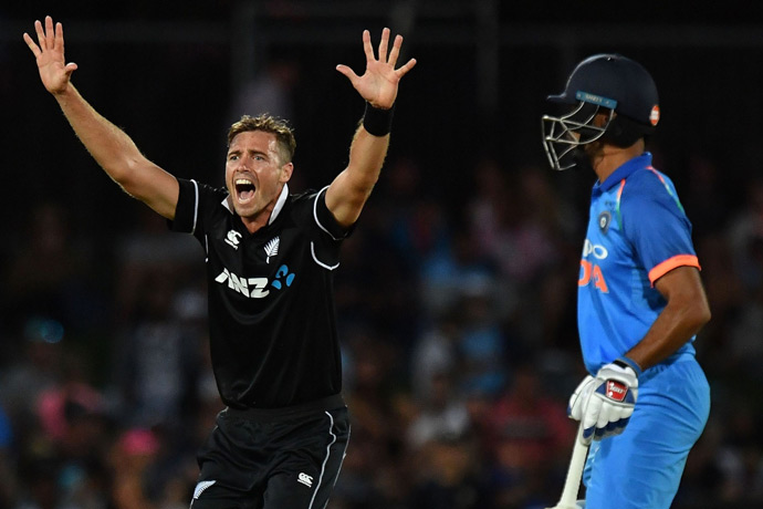 The New Zealand innings folded so quickly that India had time to bat for nine overs before the scheduled break, reaching 41 with Dhawan on 29 and Sharma on 11.