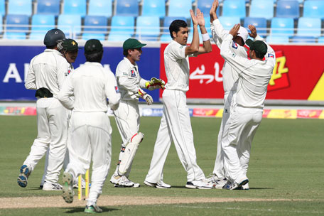 Paceman Umar Gul (3-78) did the early damage in company with Junaid Khan (2-57) before spinners Saeed Ajmal (3-45) and Abdul Rehman (2-40) completed the job on a bouncy Dubai Stadium pitch.