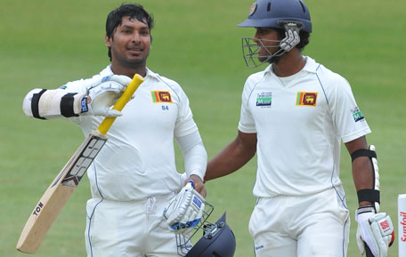 Sri Lanka's Kumar Sangakkara celebrates his century during day three of the second Test against South Africa at Sahara Park Kingsmead on Wednesday in Durban, South Africa. (GETTY)