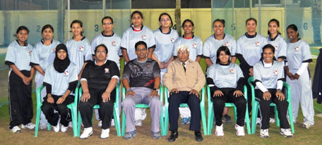 Emirates Cricket Board women's team with Mazhar Khan and other officials. (SUPPLIED)