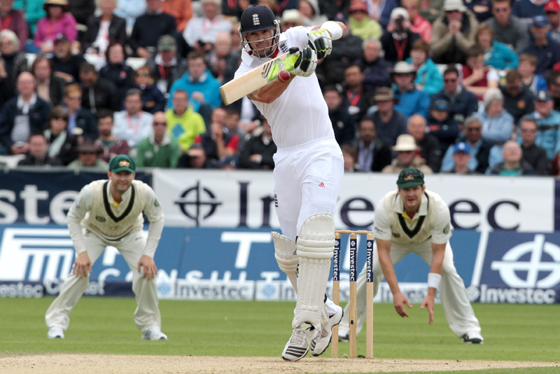 England's Kevin Pieterson plays a shot during the third day of the fourth Ashes cricket test match between England and Australia at the Durham cricket ground in Durham, north-east England on August 11, 2013. (AFP)