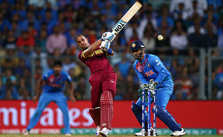 Samuels opens his account by opening the face of the bat to steer Bumrah to third man. WI 14-1, 2 overs.