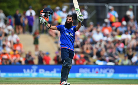 England opener Moeen Ali produced a stream of delightful drives to reach his second one-day international century in the cricket World Cup Pool A match against Scotland at Hagley Oval on Monday.