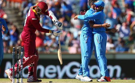 Gayle, who hit the World Cup's highest individual score of 215 against Zimbabwe last week, offered two difficult chances before he pulled Shami straight to Mohit Sharma at deep square leg. He was also guilty of running out Marlon Samuels (2).