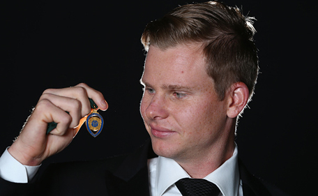 Steve Smith of Australia poses with the Allan Border Medal during the 2015 Allan Border Medal at Carriageworks on January 27, 2015 in Sydney, Australia. (Getty)