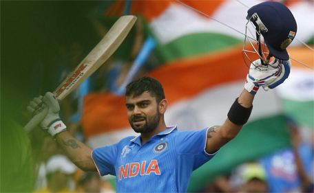 India's batsman Virat Kohli acknowledges the crowd upon scoring a century during their Cricket World Cup match against Pakistan in Adelaide, February 15, 2015. (Reuters)