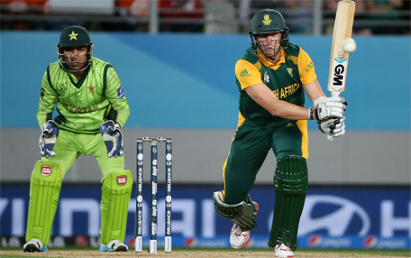 Pakistan wicket keeper Sarfaraz Ahmed (left) looks on during the Pool B 2015 Cricket World Cup match between South Africa and Pakistan at Eden Park on March 7, 2015. (AFP)