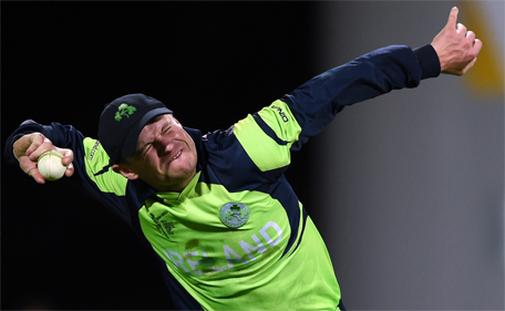 Ireland cricketer William Porterfield celebrates after their win at the Bellerive Oval ground during the 2015 Cricket World Cup Pool B match between Ireland and Zimbabwe in Hobart on March 7, 2015. (AFP)