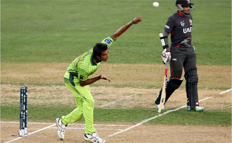 Pakistan's towering opening bowler Mohammad Irfan was virtually unplayable for his first three overs in tandem with Sohail Khan, who took two wickets as UAE slumped to 25-3 in the 10th over.
