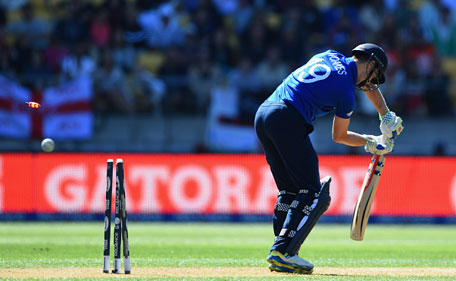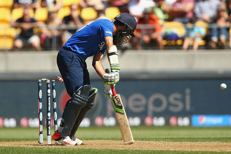 Left arm spinner Daniel Vettori then dried up the runs in the middle overs and captured the wicket of out-of-form England captain Eoin Morgan for 17.