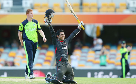 Earlier, Pakistan-born Shaiman Anwar scored the first hundred by a UAE batsman at a World Cup with 106 off 83 balls.
