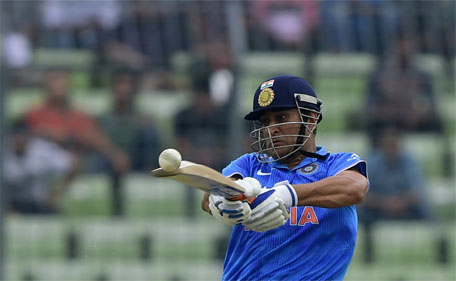Indian cricket captain Mahendra Singh Dhoni plays a shot during the third ODI cricket match between Bangladesh and India at the Sher-e-Bangla National Cricket Stadium in Dhaka on June 24, 2015. (AFP)