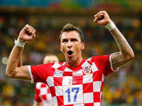 Croatia's Mario Mandzukic celebrates after scoring a goal during their 2014 World Cup Group A soccer match against Cameroon at the Amazonia arena in Manaus June 18, 2014. (REUTERS)