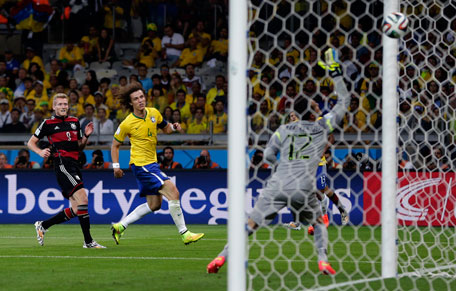 The Brazilian defence was hopelessly exposed at the opening goal, as Toni Kroos floated in a corner from the right and Thomas Mueller found himself completely unmarked at the back post to slot home his fifth goal of the tournament.