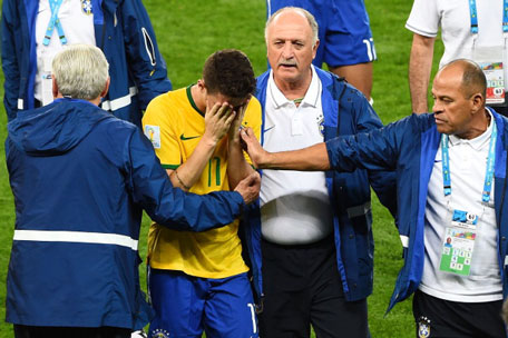 After a brief 10-minute spell when Brazil looked dangerous down the left flank, they began wobbling when Thomas Mueller opened the scoring after 11 minutes when he stole away from his marker David Luiz and volleyed home.