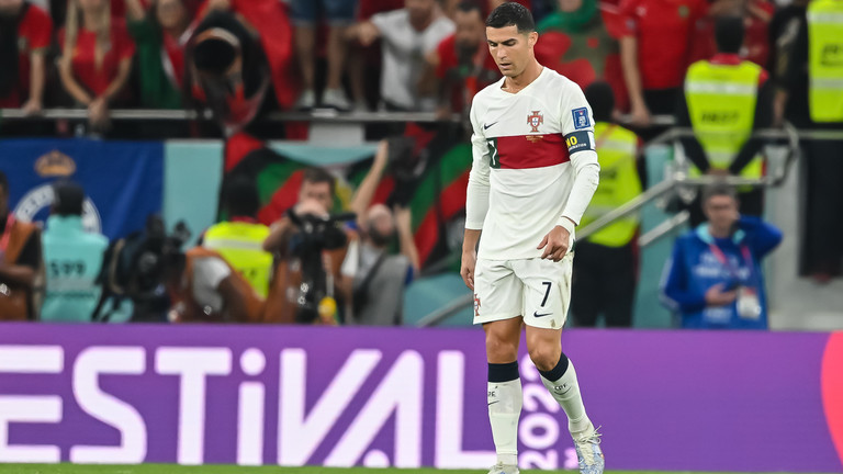 Ronaldo was pictured crying at the Al Thumama Stadium after Portugal were knocked out of the quarterfinals at Qatar 2022 by Morocco.