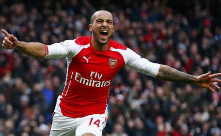 Arsenal's Theo Walcott celebrates his goal against Aston Villa during their English Premier League soccer match at the Emirates Stadium in London, February 1, 2015. (Reuters)