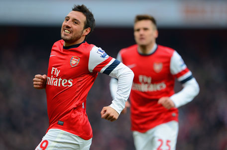 Santi Cazorla of Arsenal celebrates scoring to make it 1-0 during the Barclays Premier League match against Aston Villa at the Emirates Stadium on February 23, 2013 in London, England. (GETTY)