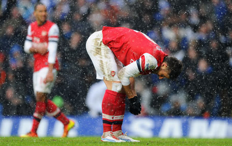 Olivier Giroud of Arsenal looks dejected during the Barclays Premier League match against Chelsea at Stamford Bridge on January 20, 2013 in London, England. (GETTY)