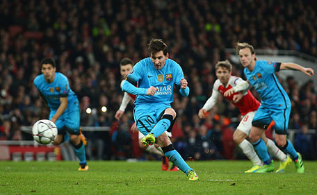 Messi, who netted four goals against the Gunners in 2010 and a double a year later in knockout round wins, doubled Barca's lead seven minutes from time when he beat Cech with a penalty, having been tripped by Arsenal substitute Mathieu Flamini.